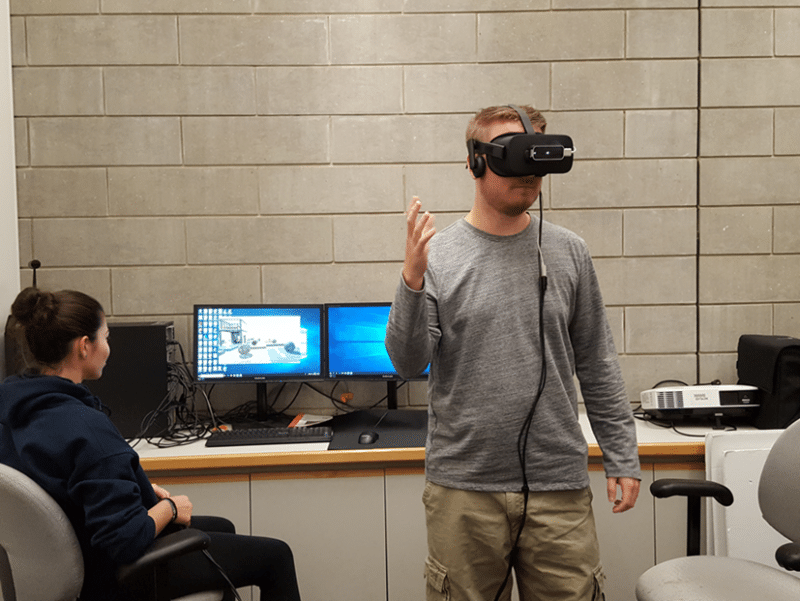 Fig. 1: Littman Architecture Library, New Jersey Institute of Technology. Images of students utilizing immersive virtual reality technology and participating in group collaborations.
