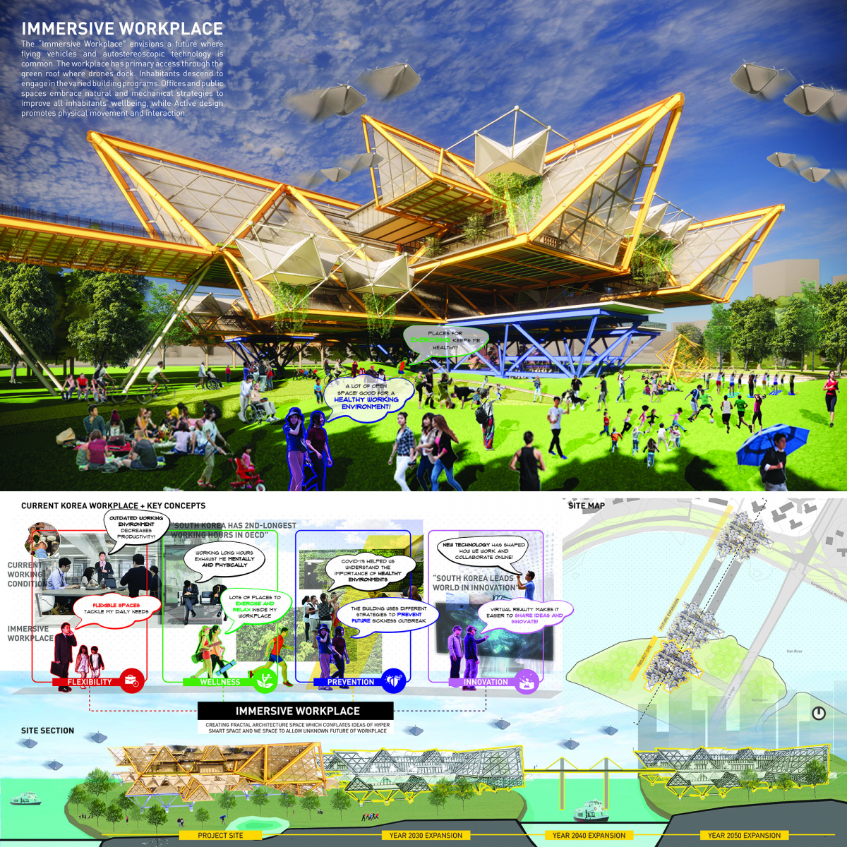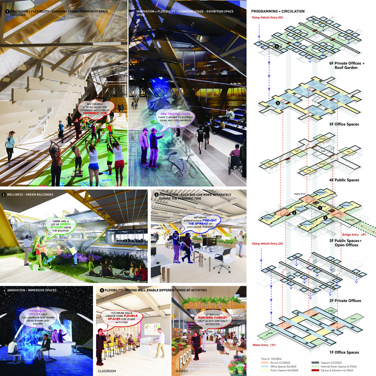 For a variety of reasons, it is expected many workers will never return to the “office” on a permanent, or full-time basis. For others, however, forced isolation created social and physical detriment, loss of production, lower creativity, challenged communication skills, deteriorating friendships, and more. Beyond the individual, the loss of physically in place urban office workers had a deleterious effect on most urban centers. Public transportation, restaurants, hotels, public venues, outdoor recreation, supporting businesses, and much more were damaged or, in some cases, lost. Therefore, this project has as its focus both the individual as well as the urban center.