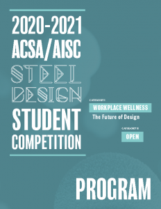 An ACSA member school, faculty sponsor is required to enroll students by completing an online registration form prior to registration by April 7, 2021. Because the support of AISC is largely derived from steel companies whose markets are mainly in the U.S., the ACSA/AISC Steel Design Student Competition is open to students and/or student teams from ACSA Full and Candidate Member Schools, as well as ACSA Affiliate Members Schools from the U.S., Canada, and Mexico.